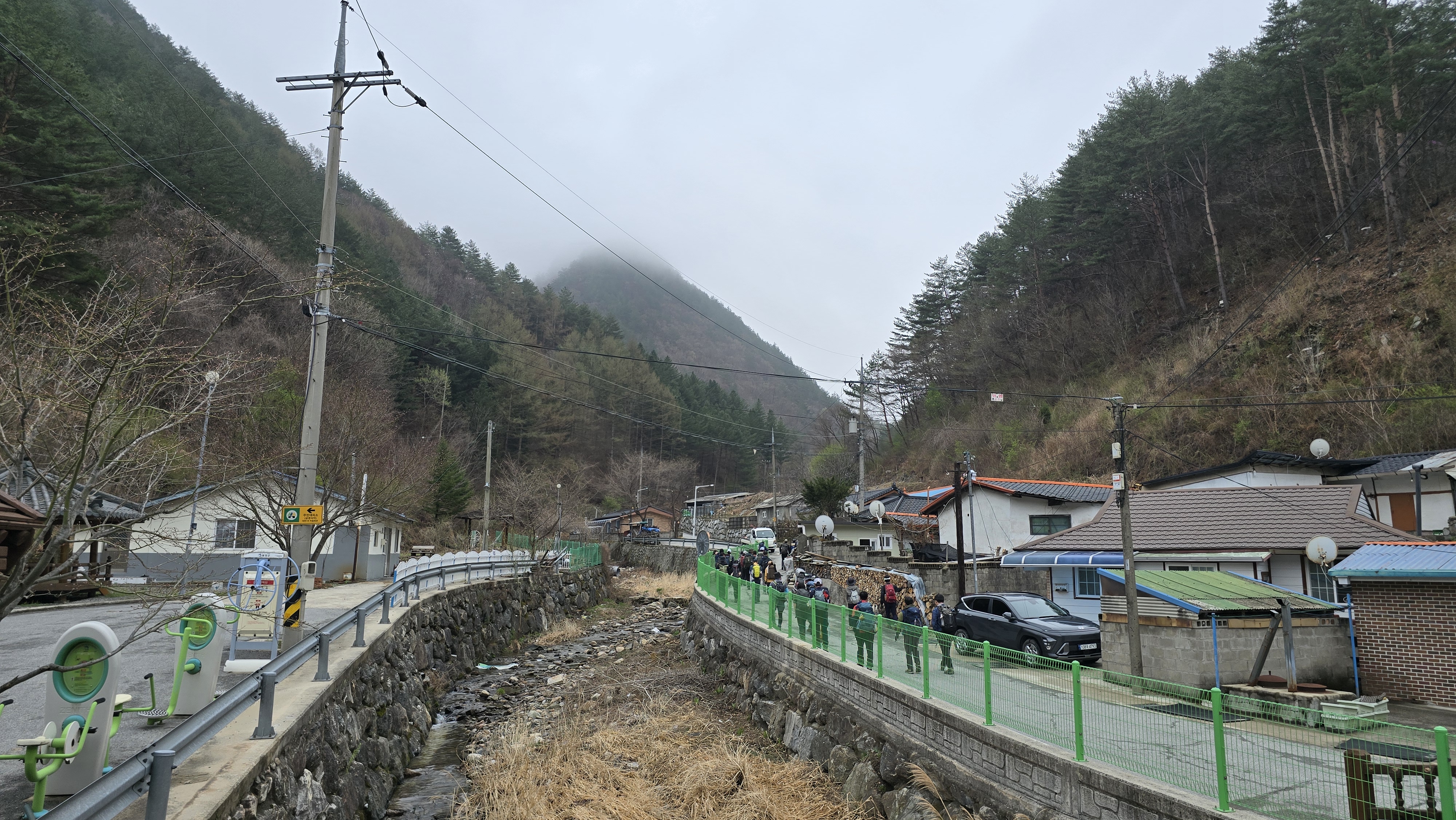 ▲ 대현1리 버스정류장이 있는 달바위 마을에서 산행을 시작한다