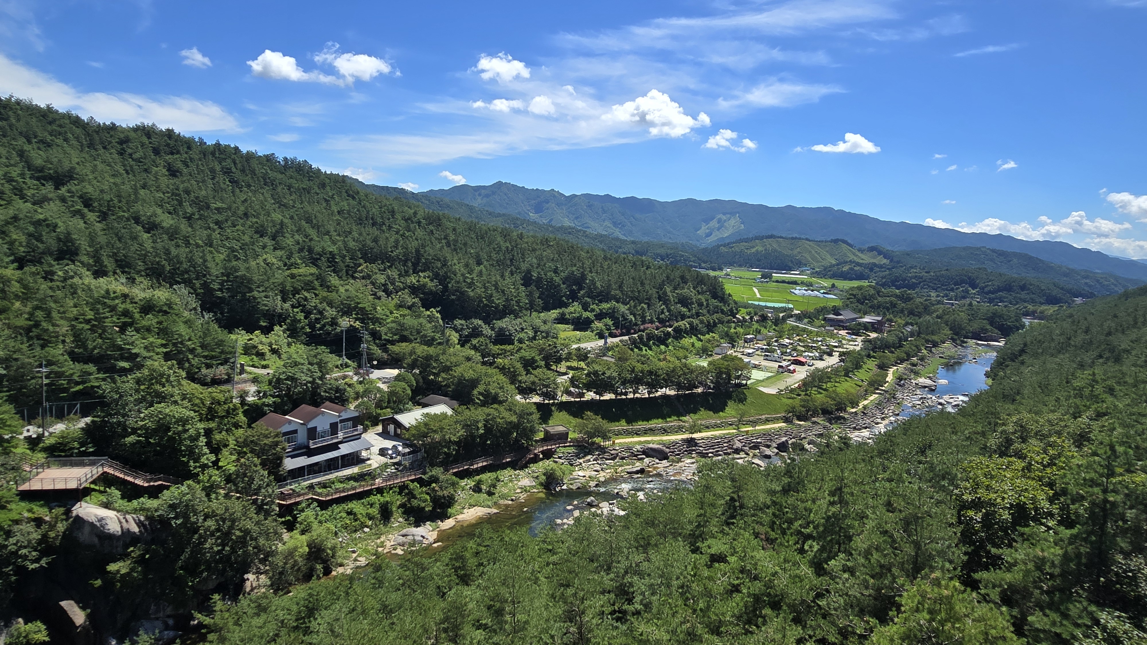 ▲ 출렁다리에서 바라본 용암정 방향, 펜션 뒤편에 용암정이 있습니다.