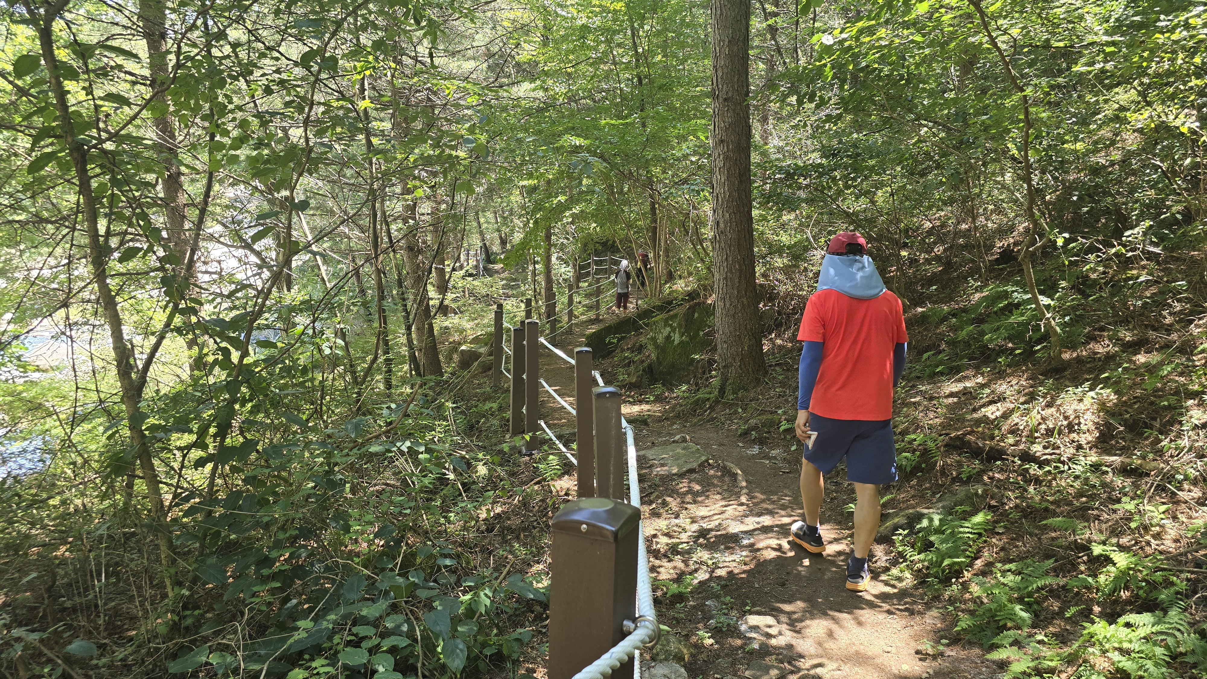 ▲ 출렁다리를 건너 용암정으로 가기 위해 수승대 무병장수 둘레길을 따라 갑니다.